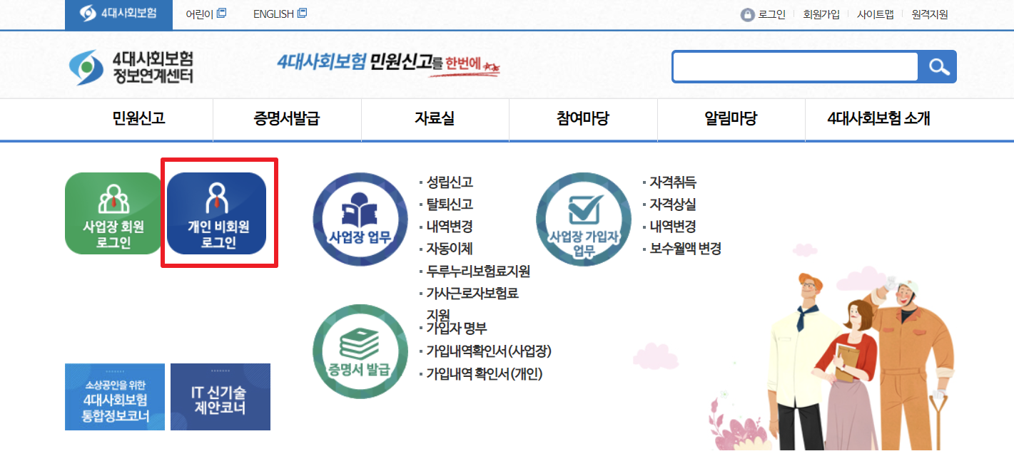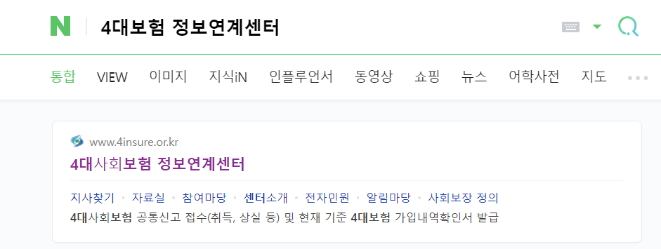 1. 4대보험 정보연계센터 검색 후 들어갑니다.