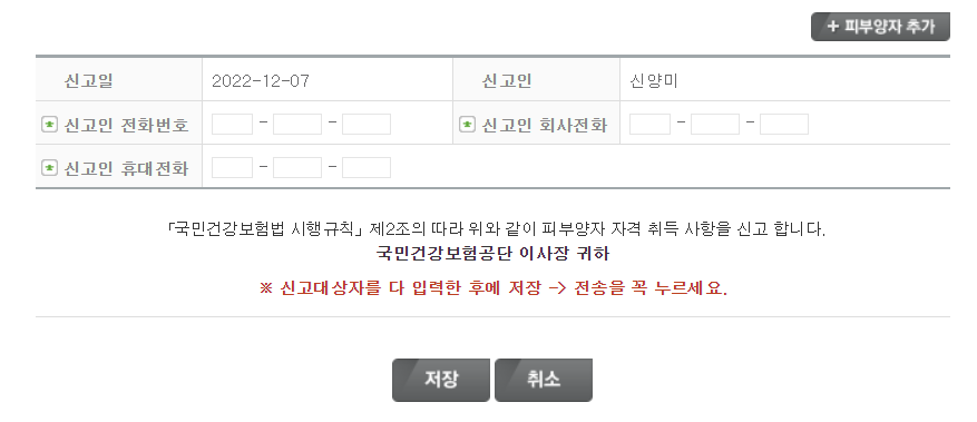 직장가입자가 퇴직으로 인해 가입을 상실했을 때 보통 자동으로 피부양자로 등록되지만 그렇지 않은 경우도 있는데요. 만약 피부양자 조건에 해당되는 분이라면 등록을 진행하시면 됩니다.
