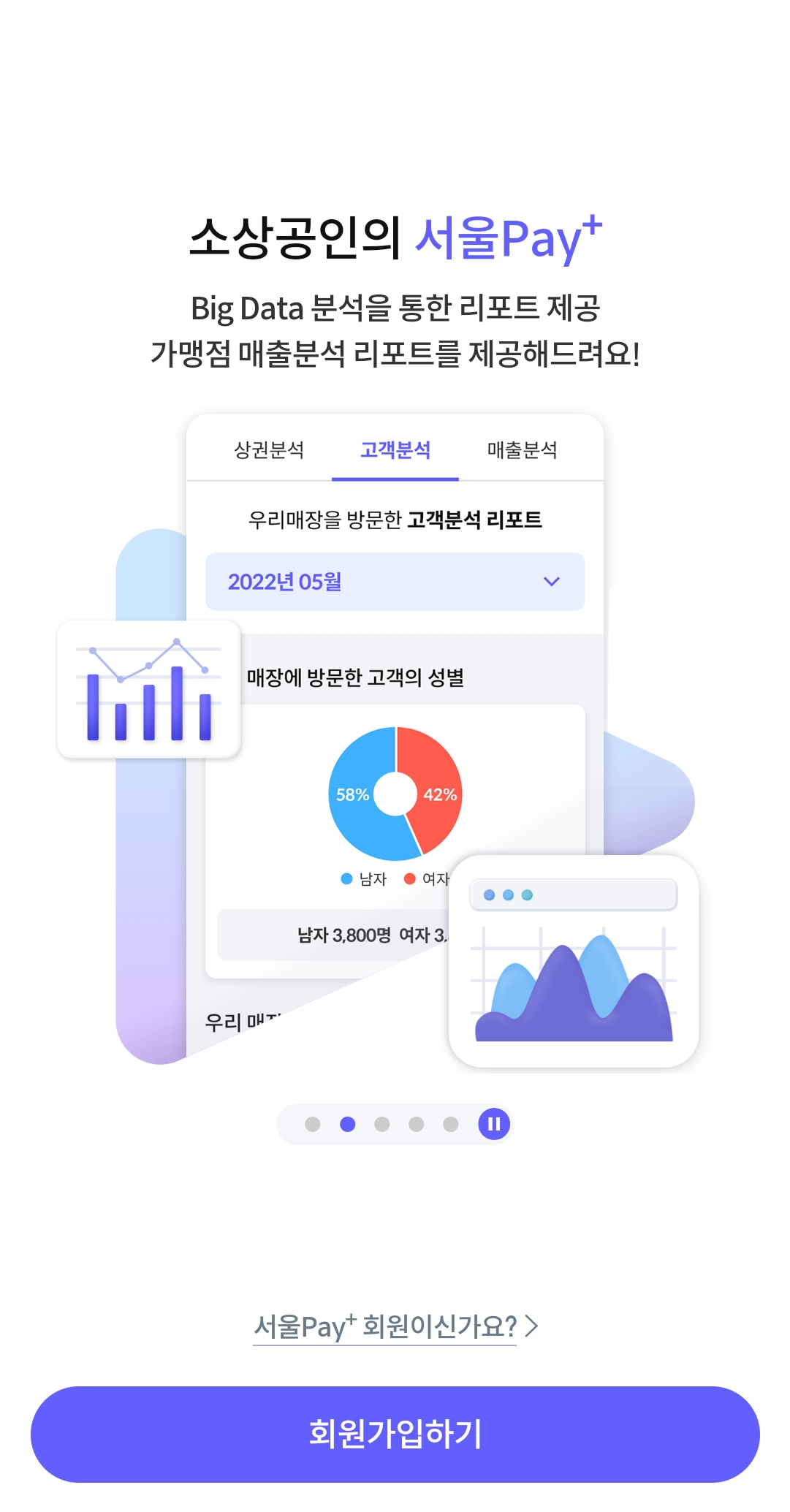 2. 회원이 아니라면 먼저 회원가입을 해주시고, 만약 가입한 적이 있다면 [서울 pay+ 회원이신가요?]를 클릭한 후 로그인을 해주세요.